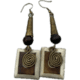 The earrings have an irregular, roughly diamond or kite shape. The shapes are slightly abstract and organic, not perfectly symmetrical. They are made of leather, which has a slightly wrinkled or textured appearance, suggesting a soft, possibly repurposed material. The earrings look to be constructed from small pieces of leather that are gathered or folded together. They have a somewhat three-dimensional, slightly bunched look. You will receive the exact earrings from the image.