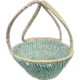 There are two handles made from the same woven plastic material. The handles are attached to the sides of the basket and are sturdy enough for carrying. DESCRIPTION