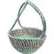 There are two handles made from the same woven plastic material. The handles are attached to the sides of the basket and are sturdy enough for carrying. DESCRIPTION